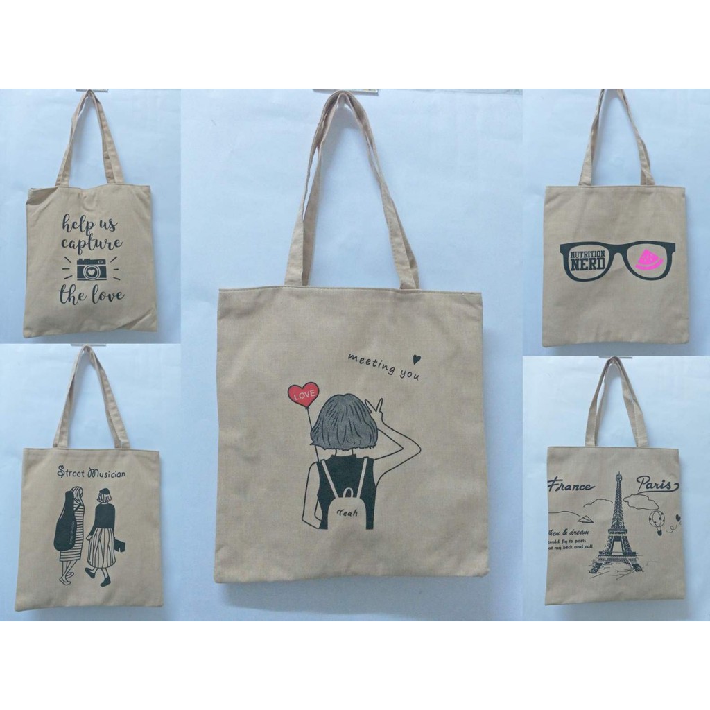 Totebag Kanvas Motif Warna Cream 002 Shopee Indonesia